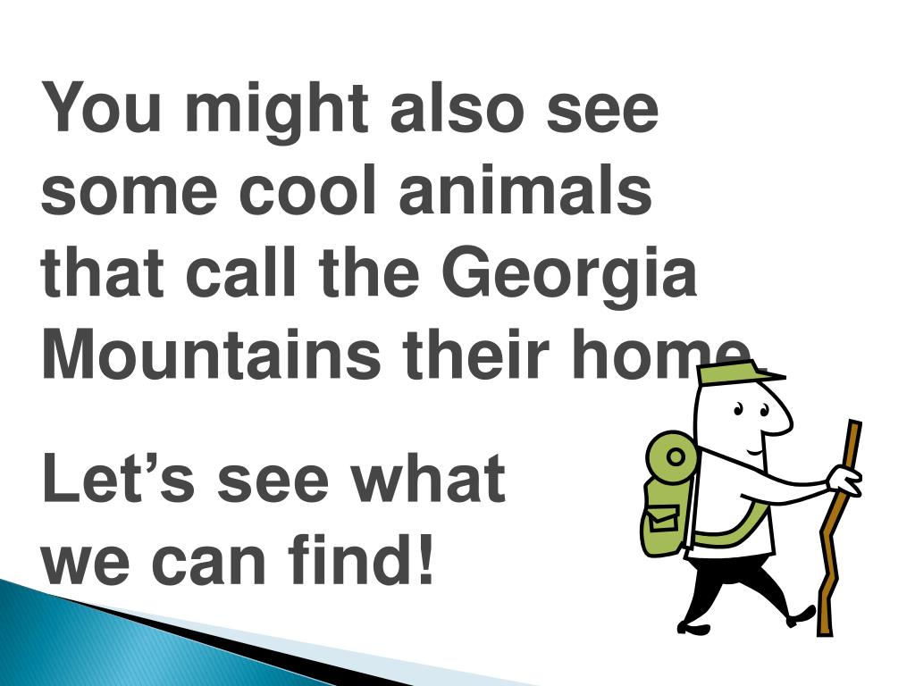You might also see some cool animals that call the Georgia Mountains their home. Let’s see what we can find!