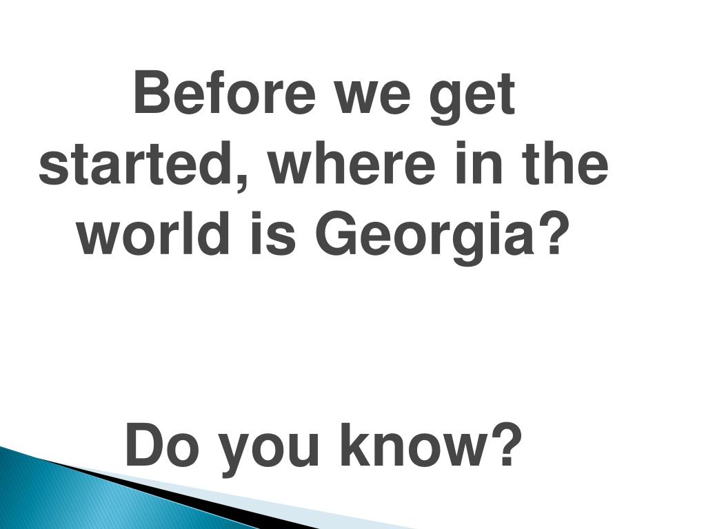 Georgia’s Habitats. Before we get started, where in the world is Georgia? Do you know?. Georgia is in the Southeastern part of the United States, on the continent of North America. There it is!.