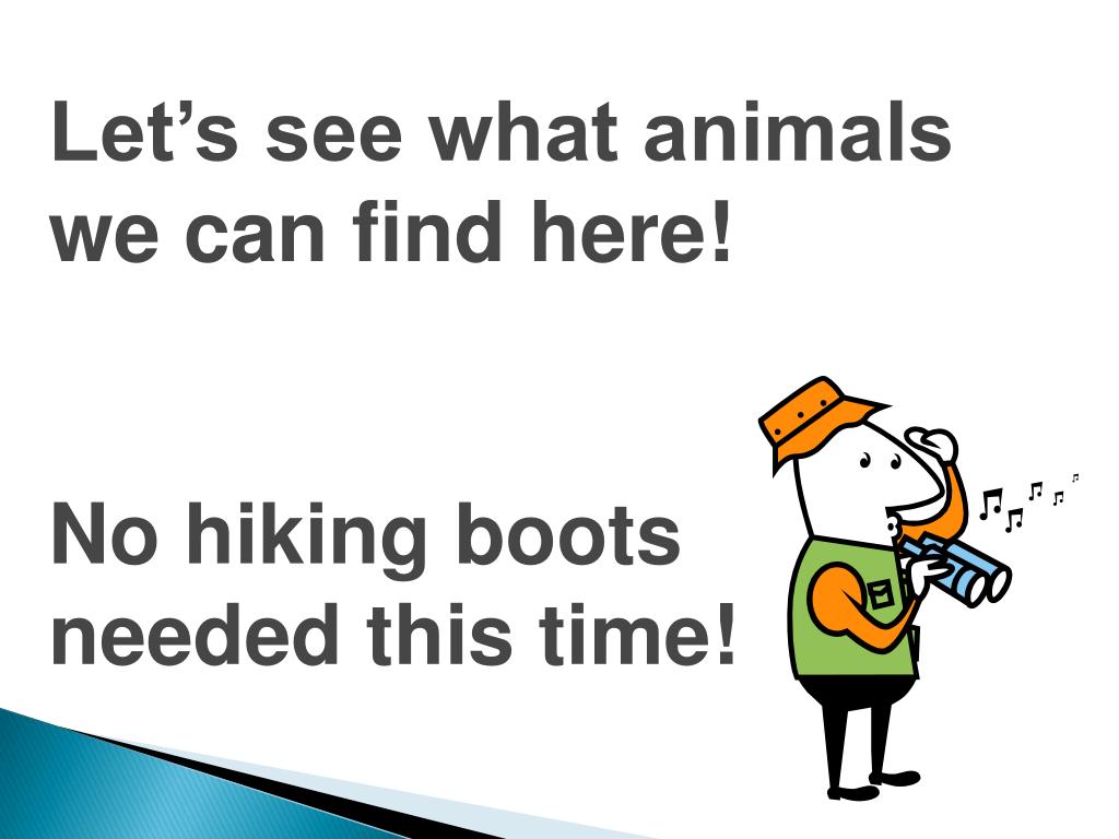 Let’s see what animals we can find here! No hiking boots needed this time!