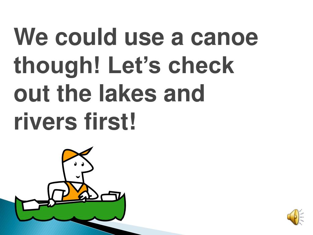 We could use a canoe though! Let’s check out the lakes and rivers first!