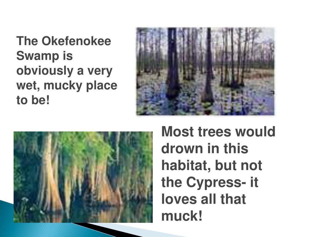 The Okefenokee Swamp is obviously a very wet, mucky place to be! Most trees would drown in this habitat, but not the Cypress- it loves all that muck!