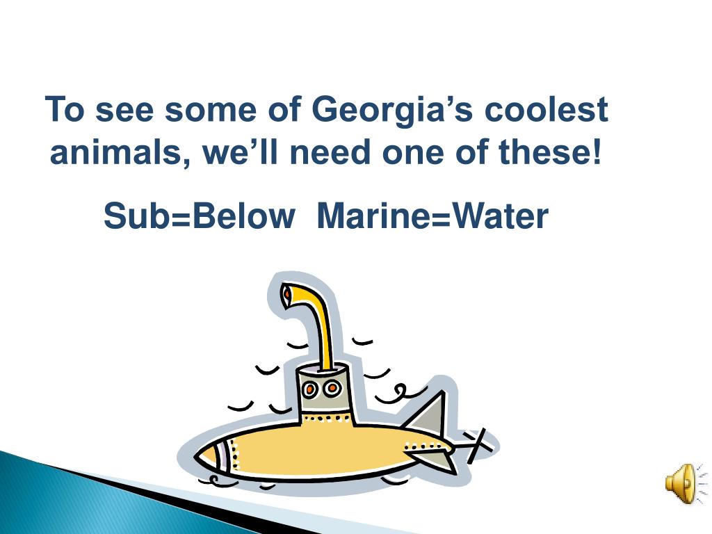 To see some of Georgia’s coolest animals, we’ll need one of these! Sub=Below Marine=Water