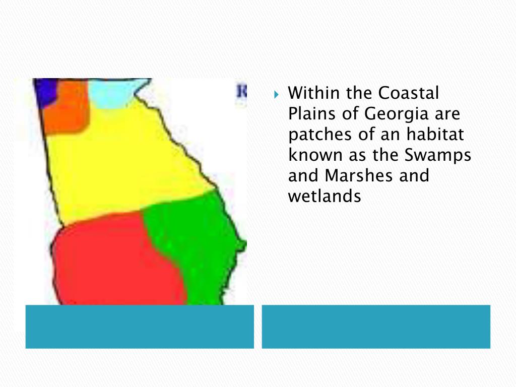 Within the Coastal Plains of Georgia are patches of an habitat known as the Swamps and Marshes and wetlands