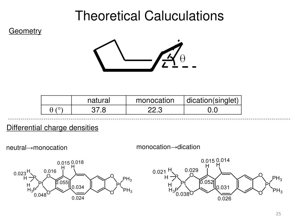 Theoretical Caluculations Geometry Differential charge densities neutral→monocation monocation→dication