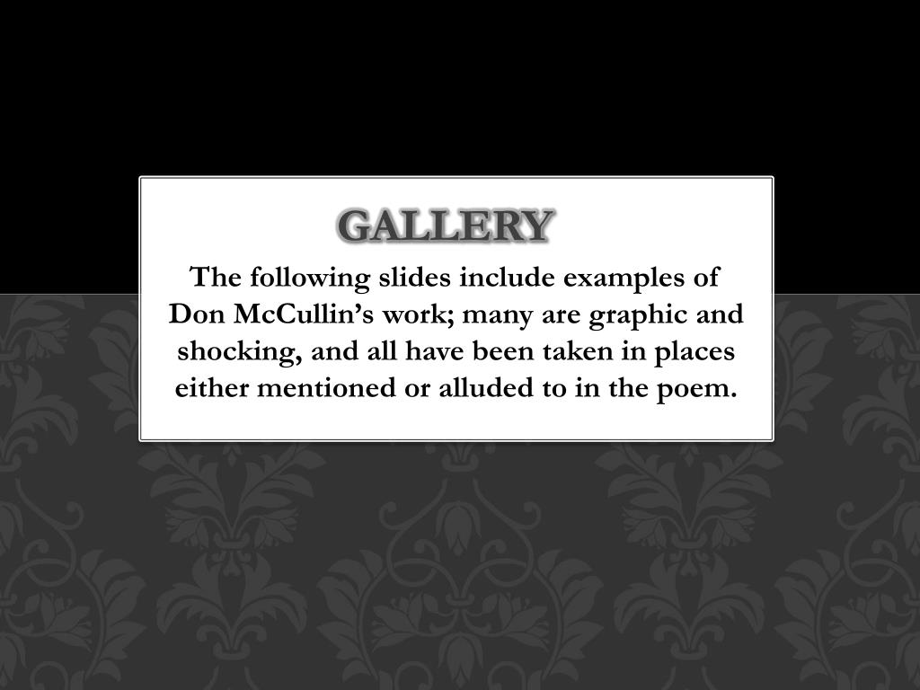 Gallery The following slides include examples of Don McCullin’s work; many are graphic and shocking, and all have been taken in places either mentioned or alluded to in the poem.
