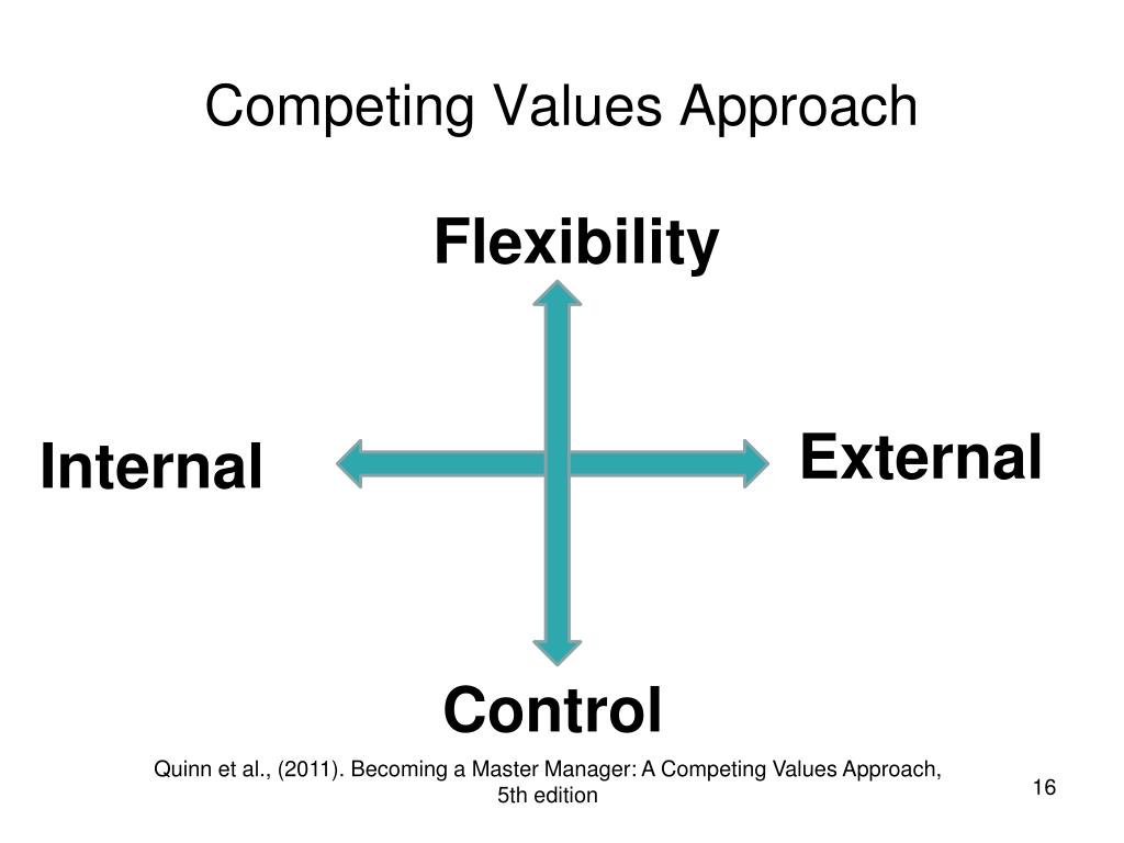 Competing Values Approach Flexibility External Internal Control Quinn et al., (2011). Becoming a Master Manager: A Competing Values Approach, 5th edition