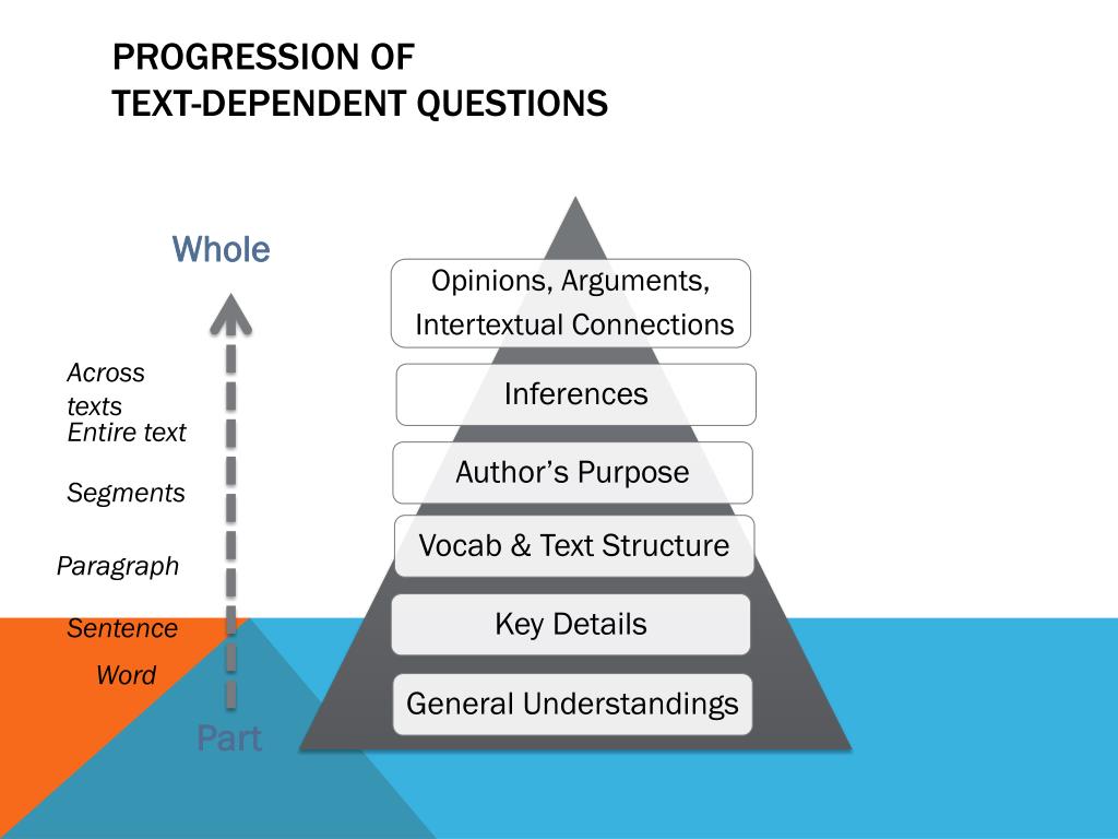 Progression of Text-dependent Questions Whole Acrosstexts Entire text Segments Paragraph Sentence Word Part