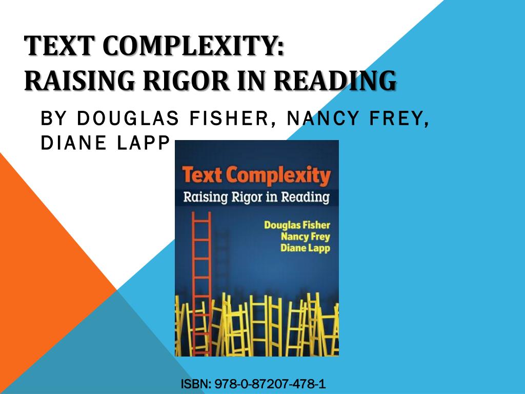 Text Complexity: Raising Rigor in Reading By Douglas Fisher, Nancy Frey, Diane Lapp ISBN: 978-0-87207-478-1