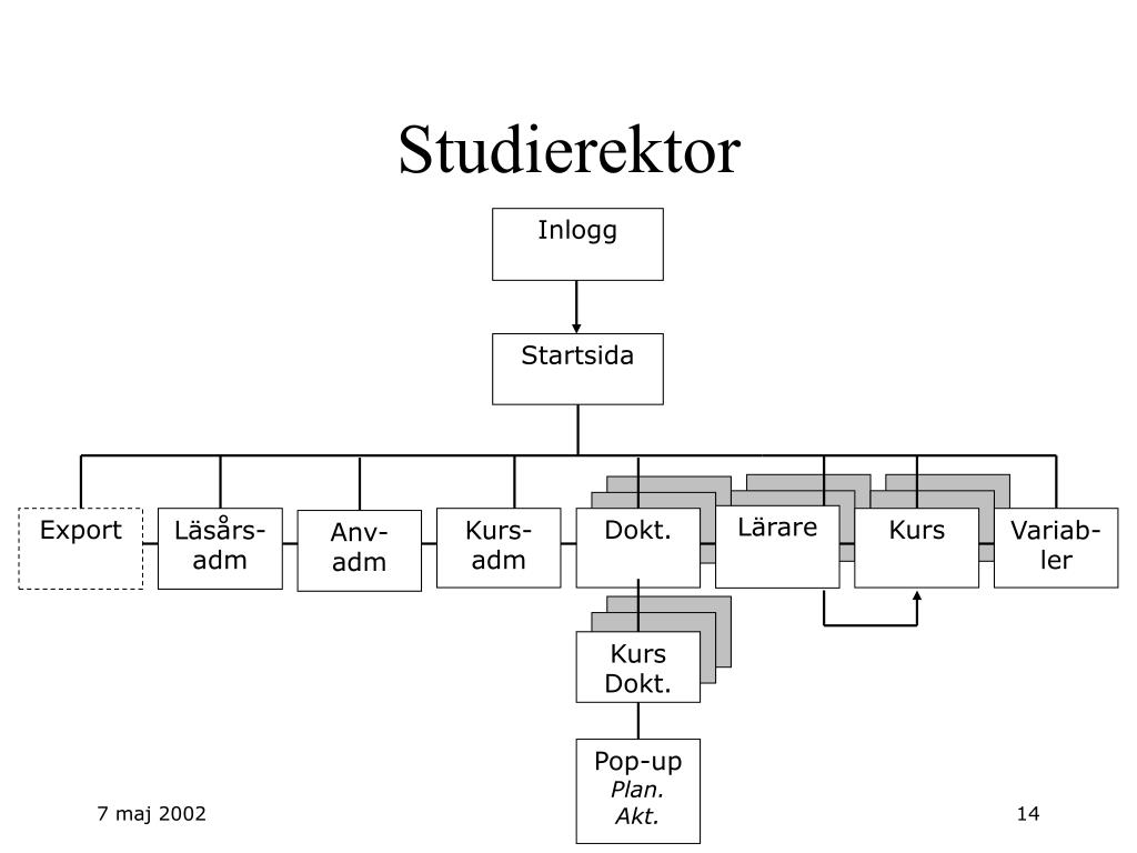 Studierektor Inlogg Startsida Lärare Export Läsårs-adm Kurs-adm Dokt. Kurs Variab-ler Anv-adm Kurs Dokt. Pop-up Plan. Akt. Presentation av SYTT