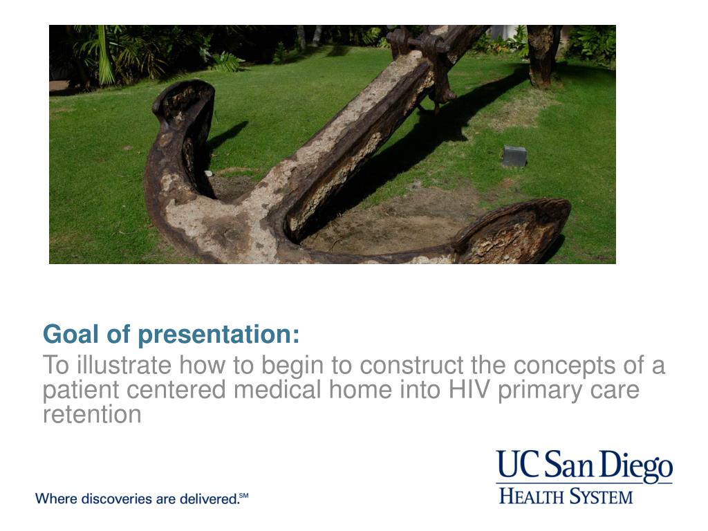 BRINGING RETENTION INTO THE HIV PATIENT CENTERED MEDICAL HOME Amy M. Sitapati, MD Associate Director, Owen Clinic Associate Clinical Professor, Department of Medicine UCSD ANCHOR:A Novel Centered Home Optimizing Retention