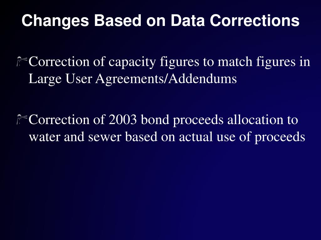 Changes Based on Data Corrections • Correction of capacity figures to match figures in Large User Agreements/Addendums • Correction of 2003 bond proceeds allocation to water and sewer based on actual use of proceeds