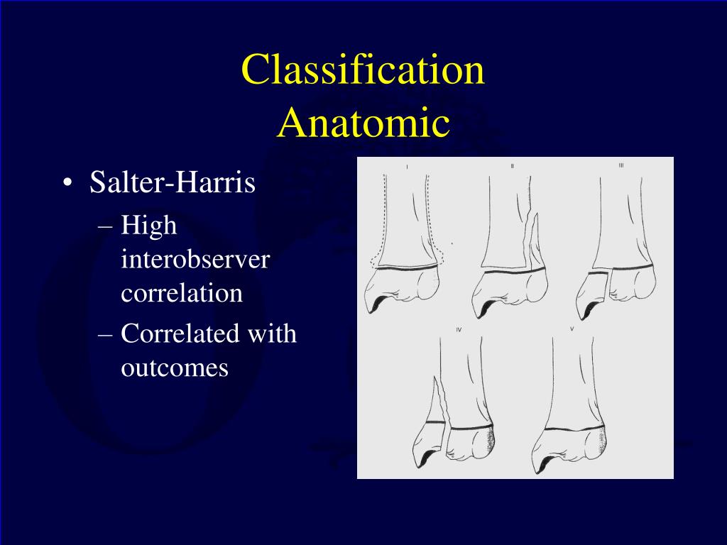 ClassificationAnatomic • Salter-Harris • High interobserver correlation • Correlated with outcomes