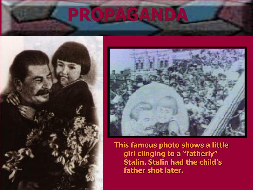 PROPAGANDA This famous photo shows a little girl clinging to a “fatherly” Stalin. Stalin had the child’s father shot later.