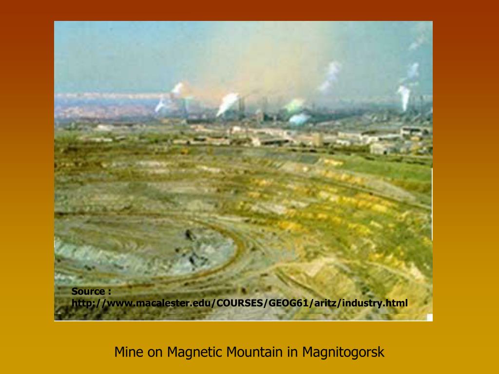 Source : http://www.macalester.edu/COURSES/GEOG61/aritz/industry.html Mine on Magnetic Mountain in Magnitogorsk