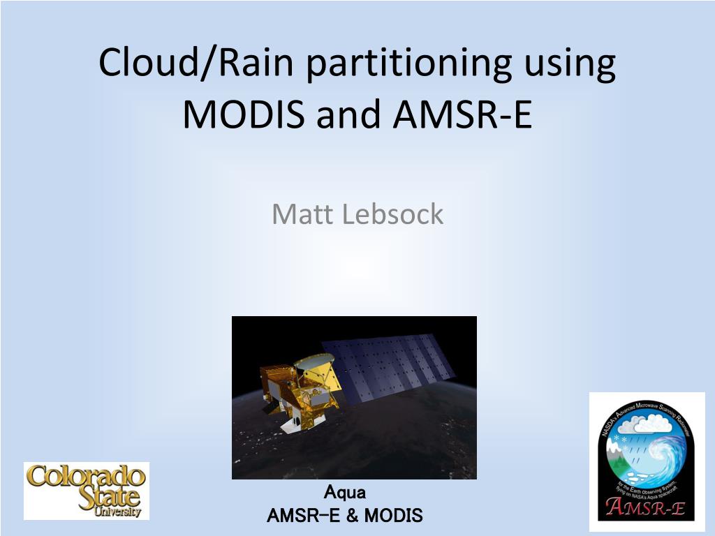 Cloud/Rain partitioning using MODIS and AMSR-E Matt Lebsock Aqua AMSR-E & MODIS