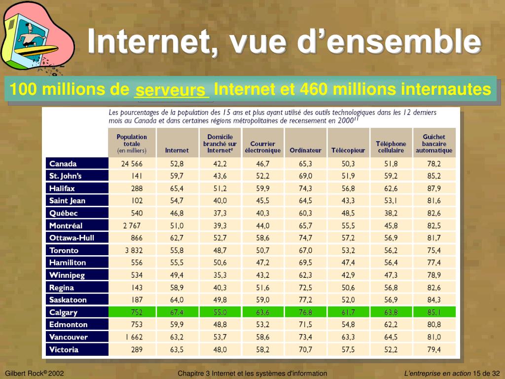 Internet, vue d’ensemble serveurs 100 millions de ________ Internet et 460 millions internautes Chapitre 3 Internet et les systèmes d'information