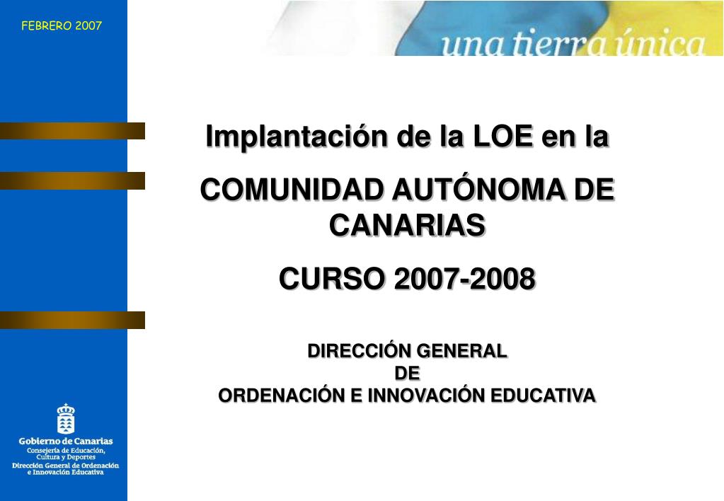 FEBRERO 2007 Implantación de la LOE en la COMUNIDAD AUTÓNOMA DE CANARIAS CURSO 2007-2008 DIRECCIÓN GENERAL DE ORDENACIÓN E INNOVACIÓN EDUCATIVA