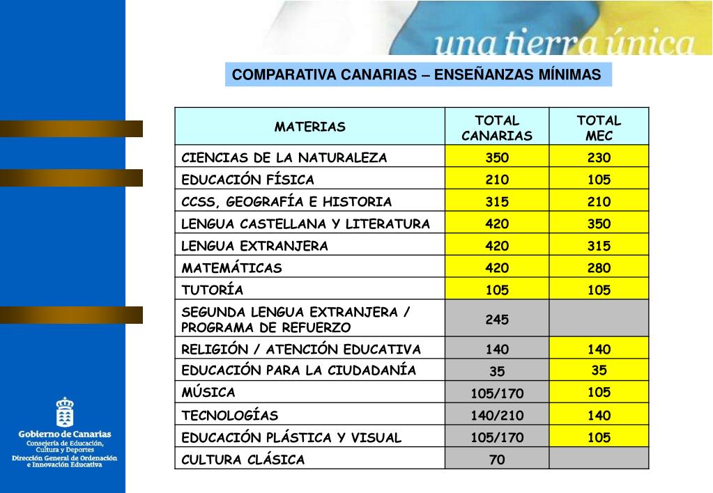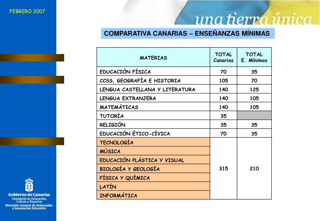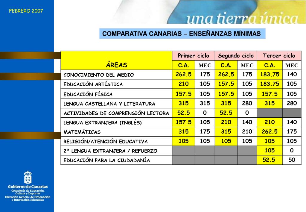 FEBRERO 2007 COMPARATIVA CANARIAS – ENSEÑANZAS MÍNIMAS