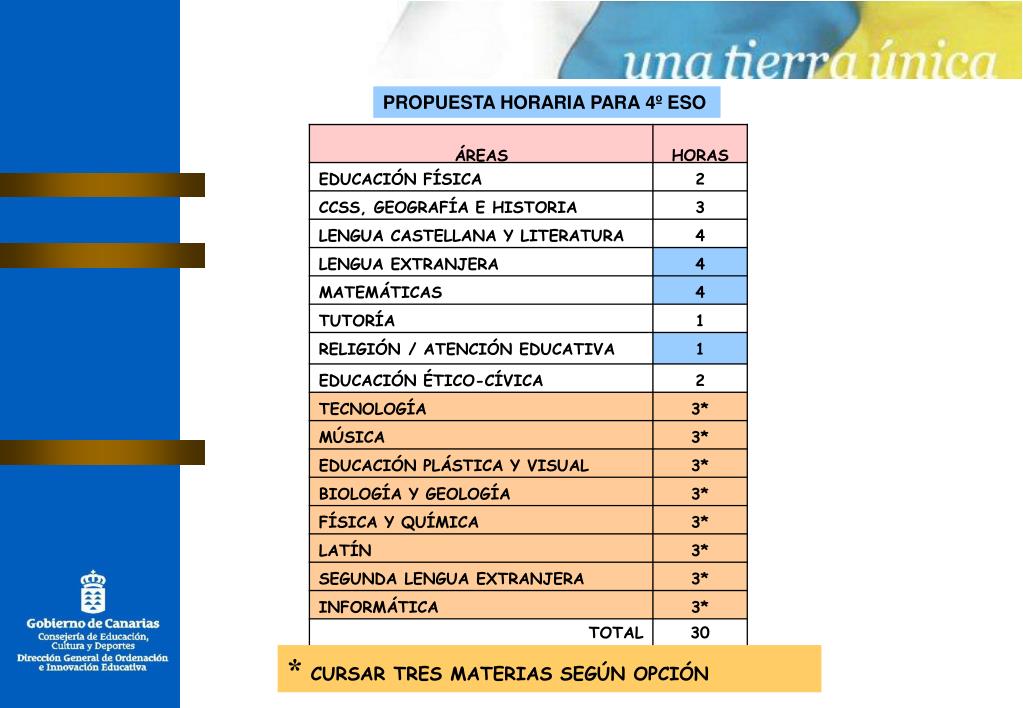 PROPUESTA HORARIA PARA 4º ESO * CURSAR TRES MATERIAS SEGÚN OPCIÓN
