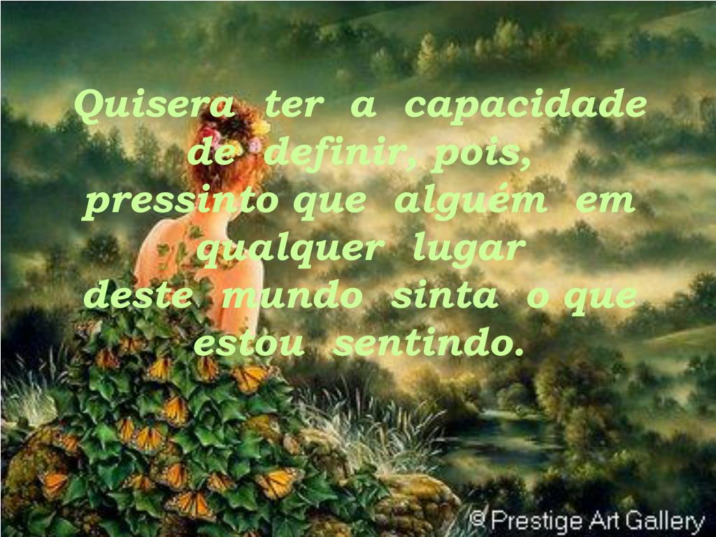 Quisera ter a capacidade de definir, pois, pressinto que alguém em qualquer lugar deste mundo sinta o que estou sentindo.