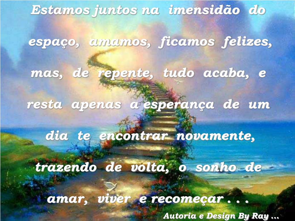Estamos juntos na imensidão do espaço, amamos, ficamos felizes, mas, de repente, tudo acaba, e resta apenas a esperança de um dia te encontrar novamente, trazendo de volta, o sonho de amar, viver e recomeçar . . . Autoria e Design By Ray ...