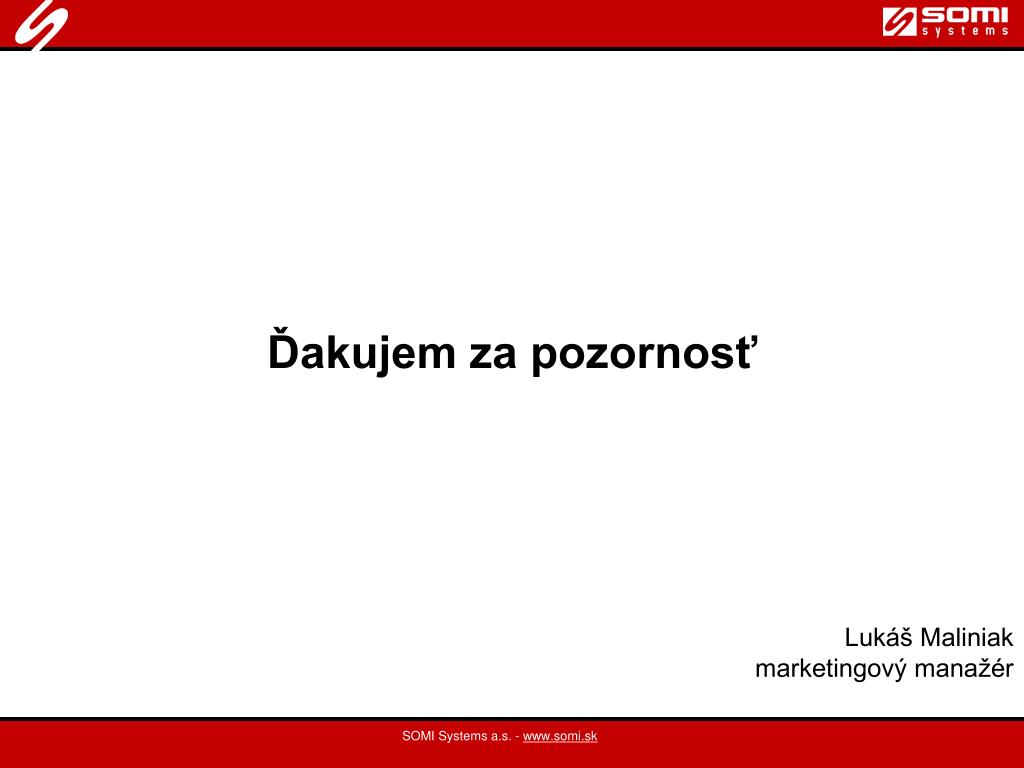 Ďakujem za pozornosť Lukáš Maliniak marketingový manažér SOMI Systems a.s. - www.somi.sk