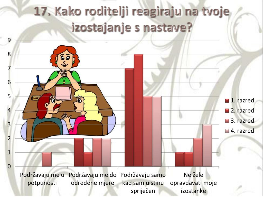 17. Kako roditelji reagiraju na tvoje izostajanje s nastave?