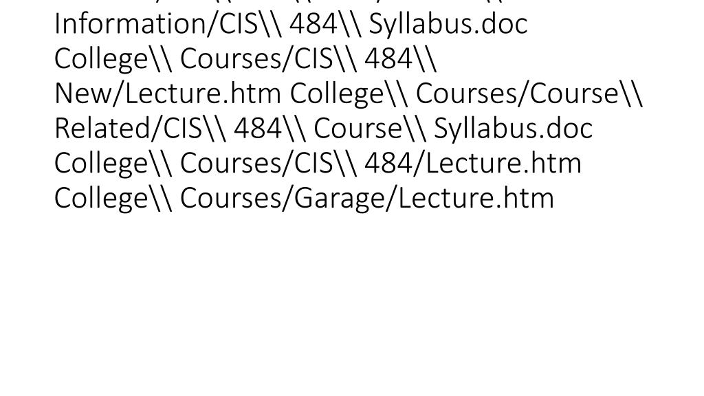 vti_backlinkinfo:VX|College\\ Courses/Test/Examination.htm College\\ Courses/CIS\\ 484\\ New/Course\\ Information/CIS\\ 484\\ Syllabus.doc College\\ Courses/CIS\\ 484\\ New/Lecture.htm College\\ Courses/Course\\ Related/CIS\\ 484\\ Course\\ Syllabus.doc College\\ Courses/CIS\\ 484/Lecture.htm College\\ Courses/Garage/Lecture.htm