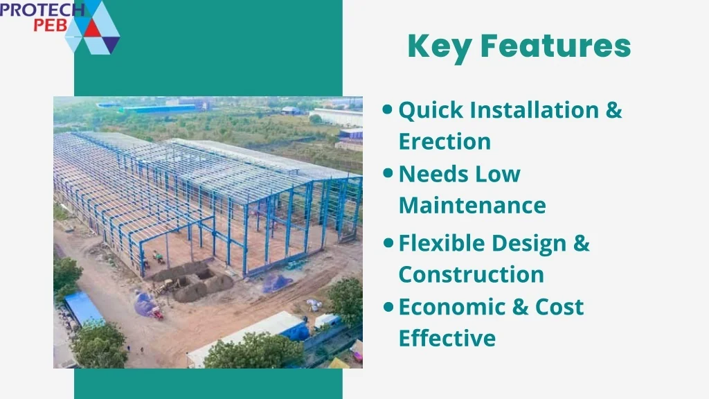 Key Features Quick Installation & Erection Needs Low Maintenance Flexible Design & Construction Economic & Cost Effective
