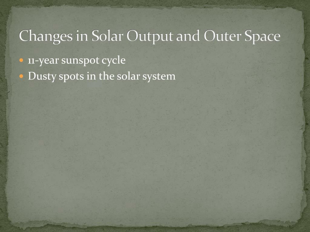 Changes in Solar Output and Outer Space • 11-year sunspot cycle • Dusty spots in the solar system