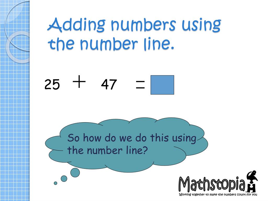 Adding numbers using the number line. 25 47 So how do we do this using the number line?