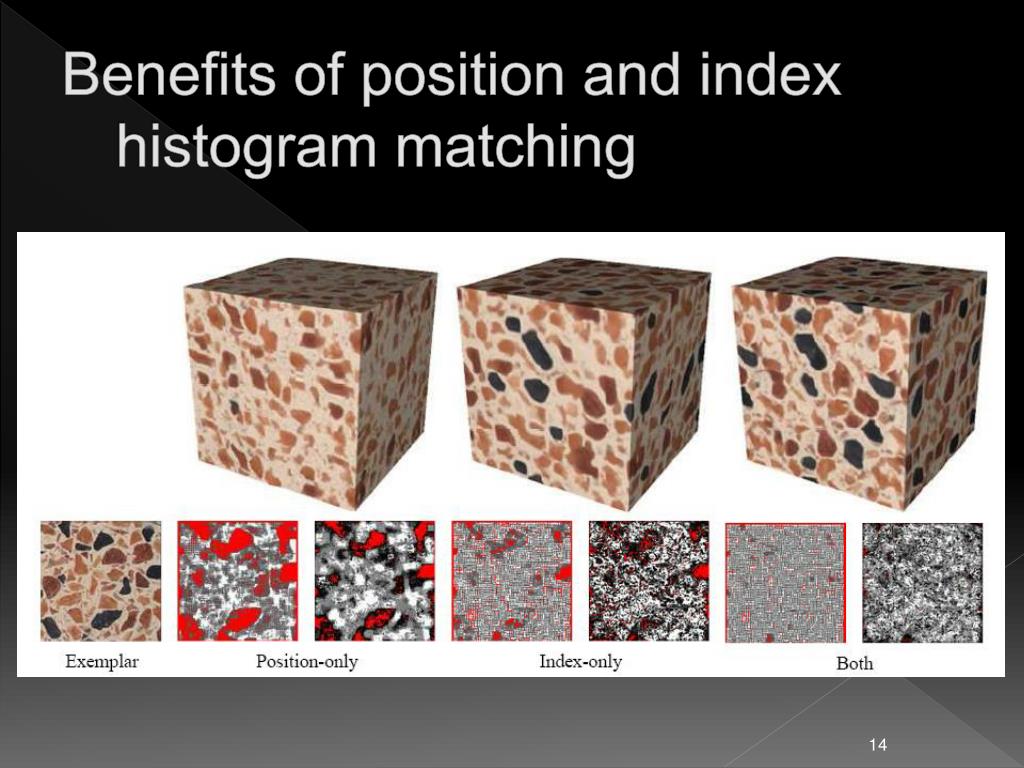 High Quality Solid Texture Synthesis using Position and Index Histogram Matching Chen, J. and Wang, B. 2010. High quality solid texture synthesis using position and index histogram matching. Vis. Comput. 26, 4 (Apr. 2010), 253-262. . Jiating Chen 1,2 , Bin Wang 1