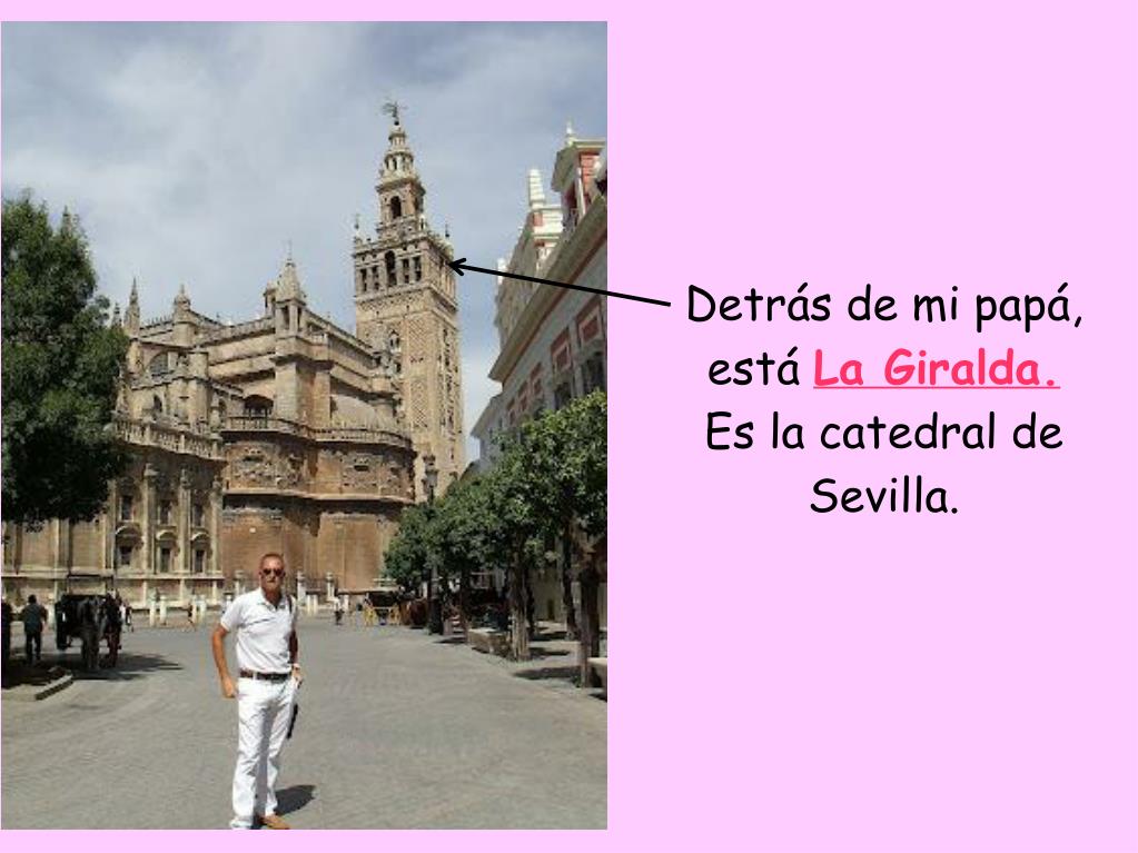 Detrás de mi papá, está La Giralda. Es la catedral de Sevilla.