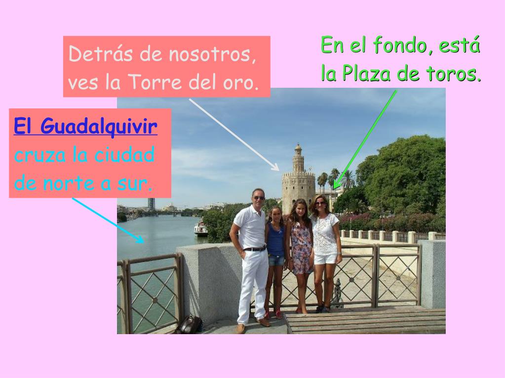 En el fondo, está la Plaza de toros. Detrás de nosotros, ves la Torre del oro. El Guadalquivir cruza la ciudad de norte a sur.