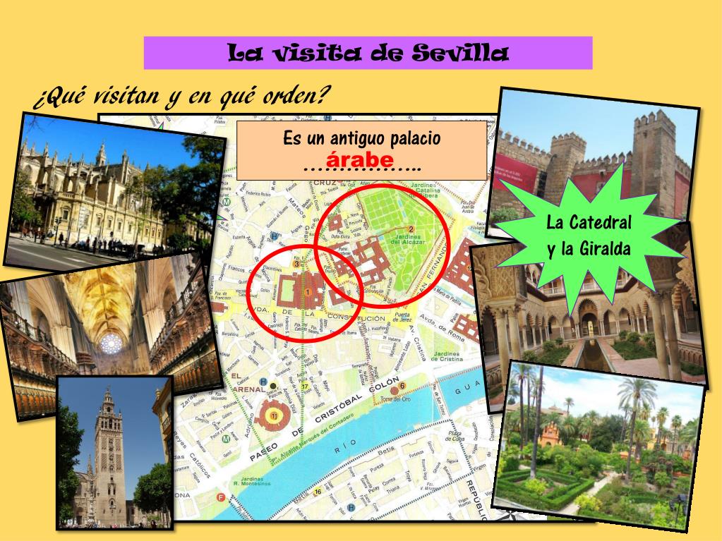 La visita de Sevilla ¿Quévisitan y en quéorden? Es un antiguopalacio …………….. Los RealesAlcazares árabe La Catedral y la Giralda