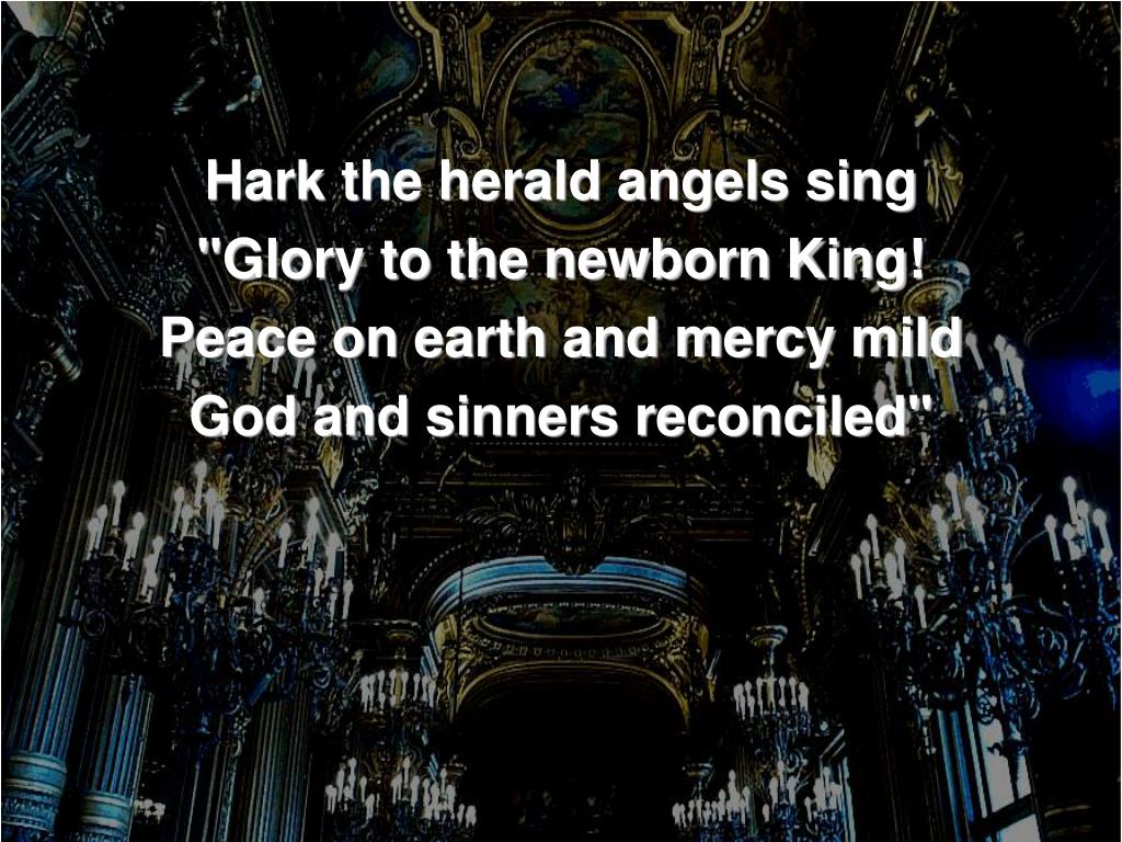Hark the herald angels sing "Glory to the newborn King! Peace on earth and mercy mild God and sinners reconciled"