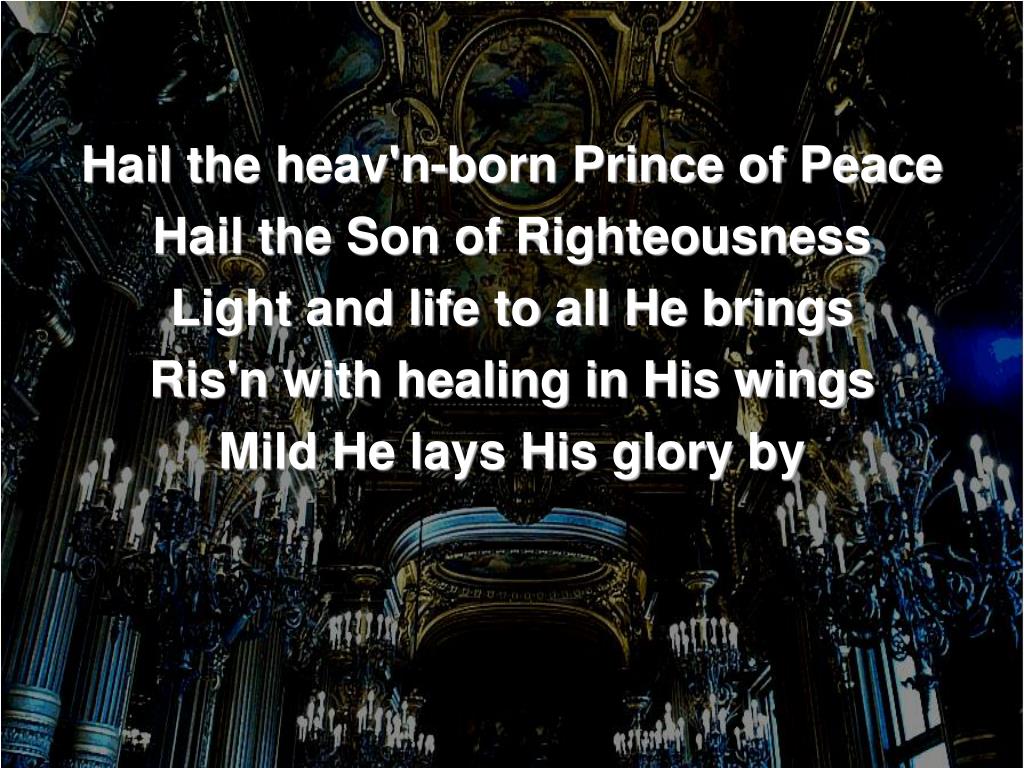 Hail the heav'n-born Prince of Peace Hail the Son of Righteousness Light and life to all He brings Ris'n with healing in His wings Mild He lays His glory by