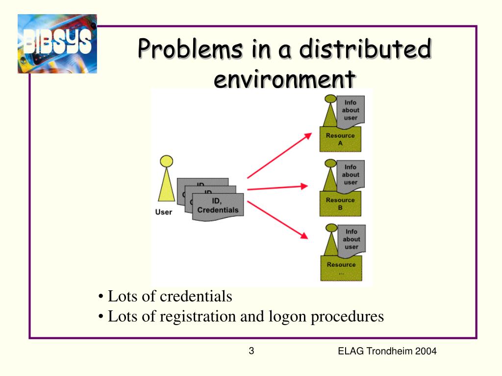 Problems in a distributed environment • Lots of credentials • Lots of registration and logon procedures ELAG Trondheim 2004