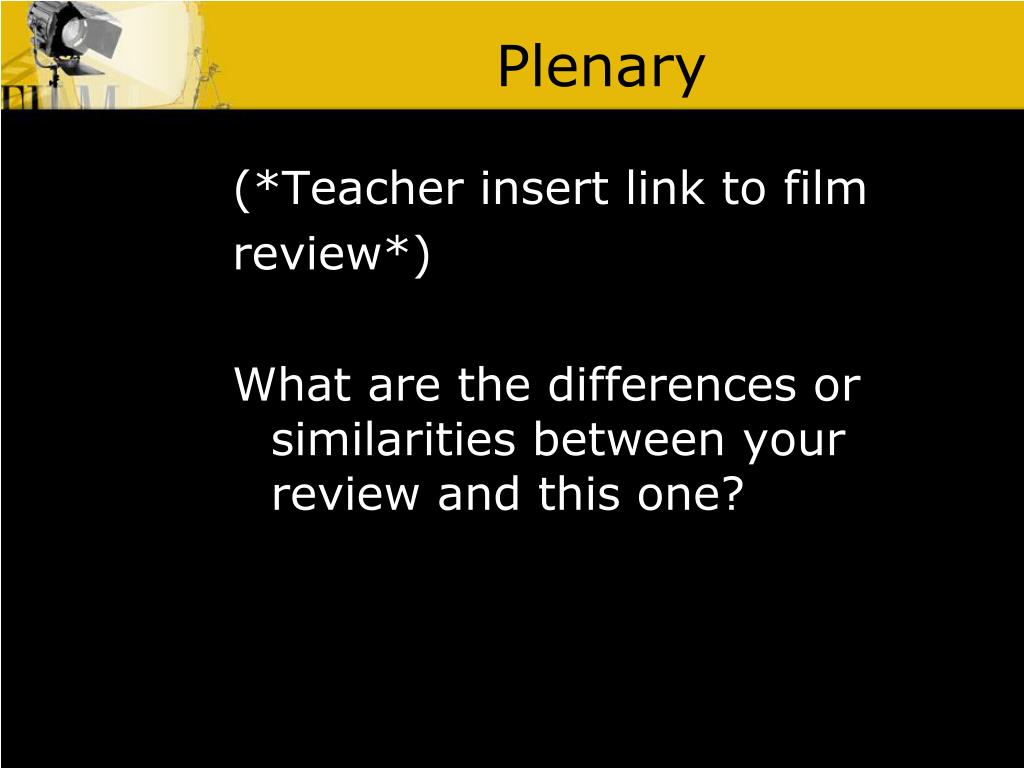 Plenary (*Teacher insert link to film review*) What are the differences or similarities between your review and this one?