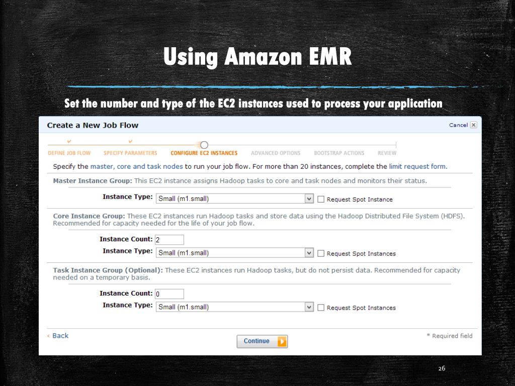Using Amazon EMR Set the number and type of the EC2 instances used to process your application