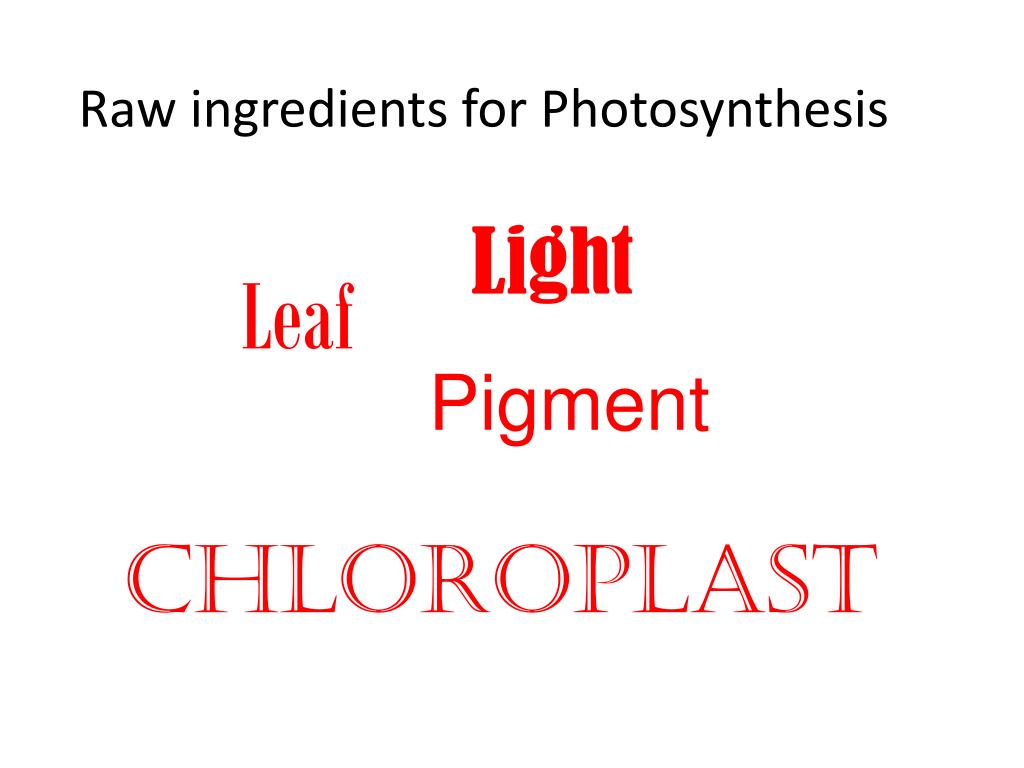 Raw ingredients for Photosynthesis Light Leaf Pigment chloroplast