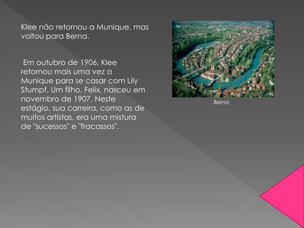 Klee não retornou a Munique, mas voltou para Berna. Em outubro de 1906, Klee retornou mais uma vez a Munique para se casar com Lily Stumpf. Um filho, Felix, nasceu em novembro de 1907. Neste estágio, sua carreira, como as de muitos artistas, era uma mistura de "sucessos" e "fracassos". Berna