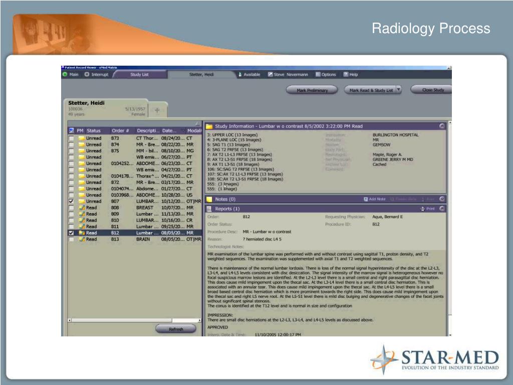 Easy Steps for Star-Med Radiology Request Options Step 1 Client can request films from an MRI facility and instructs the facility to forward them to Star-Med. Step 2 Client authorizes Star-Med to retrieve MRI films on their behalf. Step 3 When client is requesting the initial radiology report from the MRI facility or when receives the initial report – the client can automatically request the actual films/CD to be sent directly to Star-Med. Step 4 Star-Med scans films and stores them on our secure server for later retrieval by the client for 2nd Opinion Radiology Review.