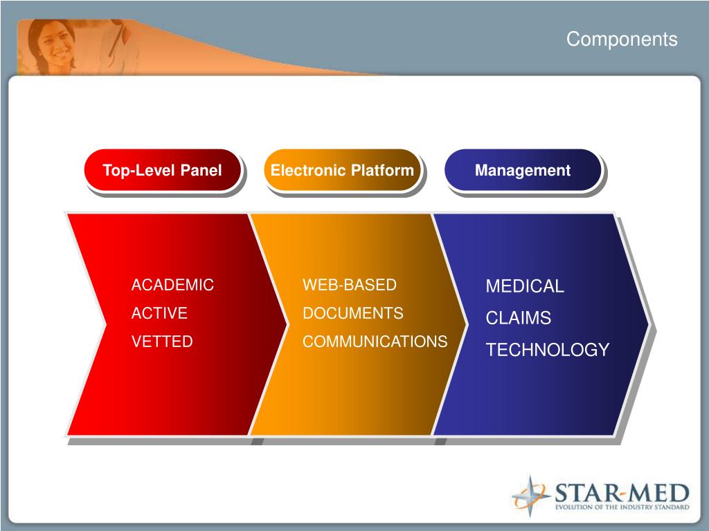 Top-Level Panel Electronic Platform Management ACADEMIC ACTIVE VETTED WEB-BASED DOCUMENTS COMMUNICATIONS MEDICAL CLAIMS TECHNOLOGY Components