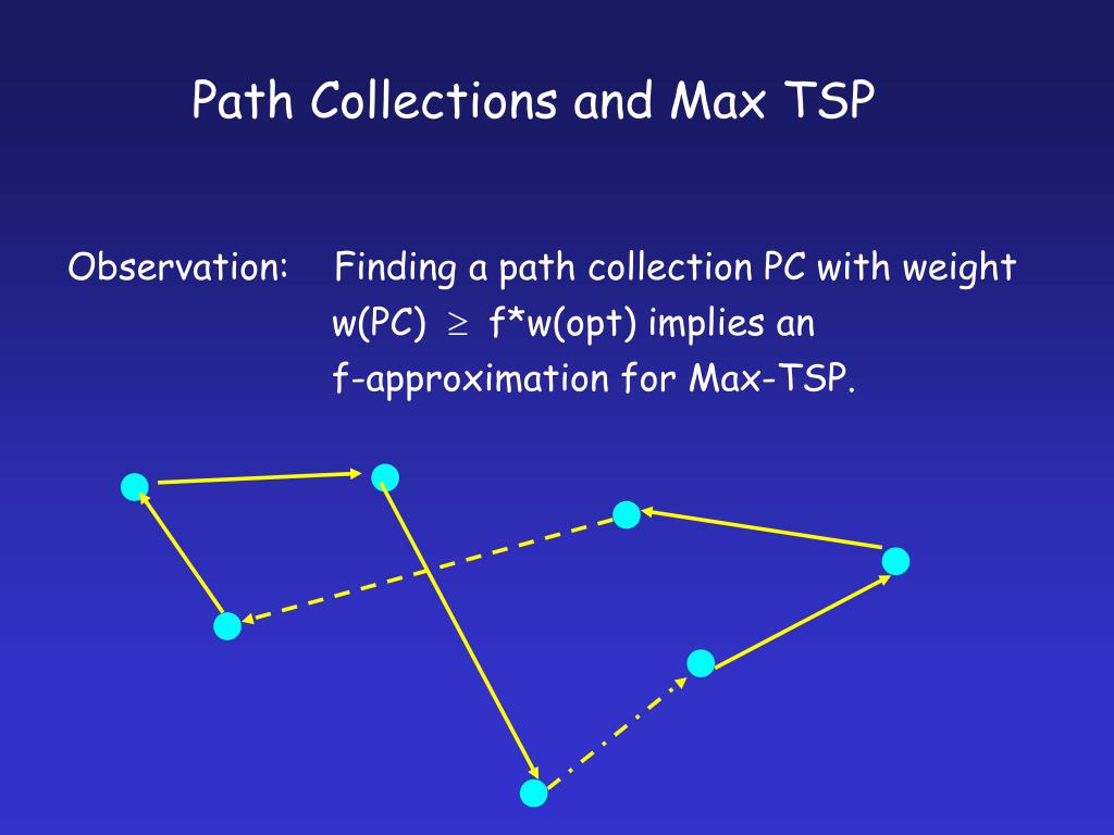 Path Collections and Max TSP Observation: Finding a path collection PC with weight w(PC) ³ f*w(opt) implies an f-approximation for Max-TSP.