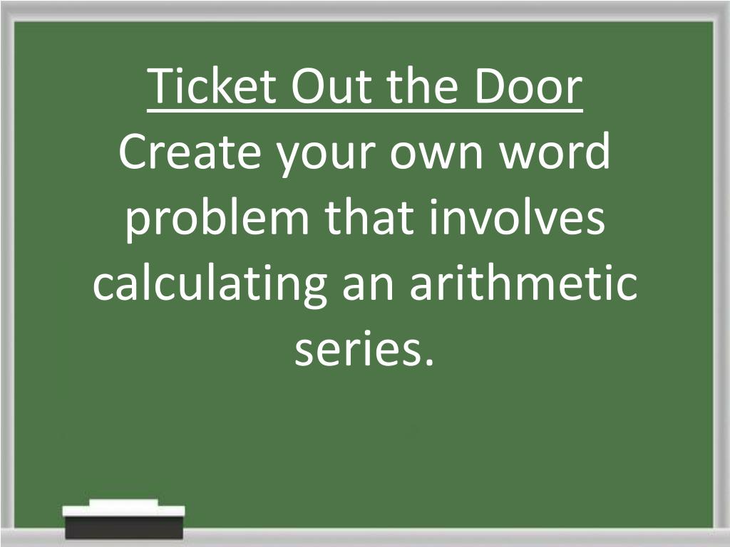 Ticket Out the DoorCreate your own word problem that involves calculating an arithmetic series.