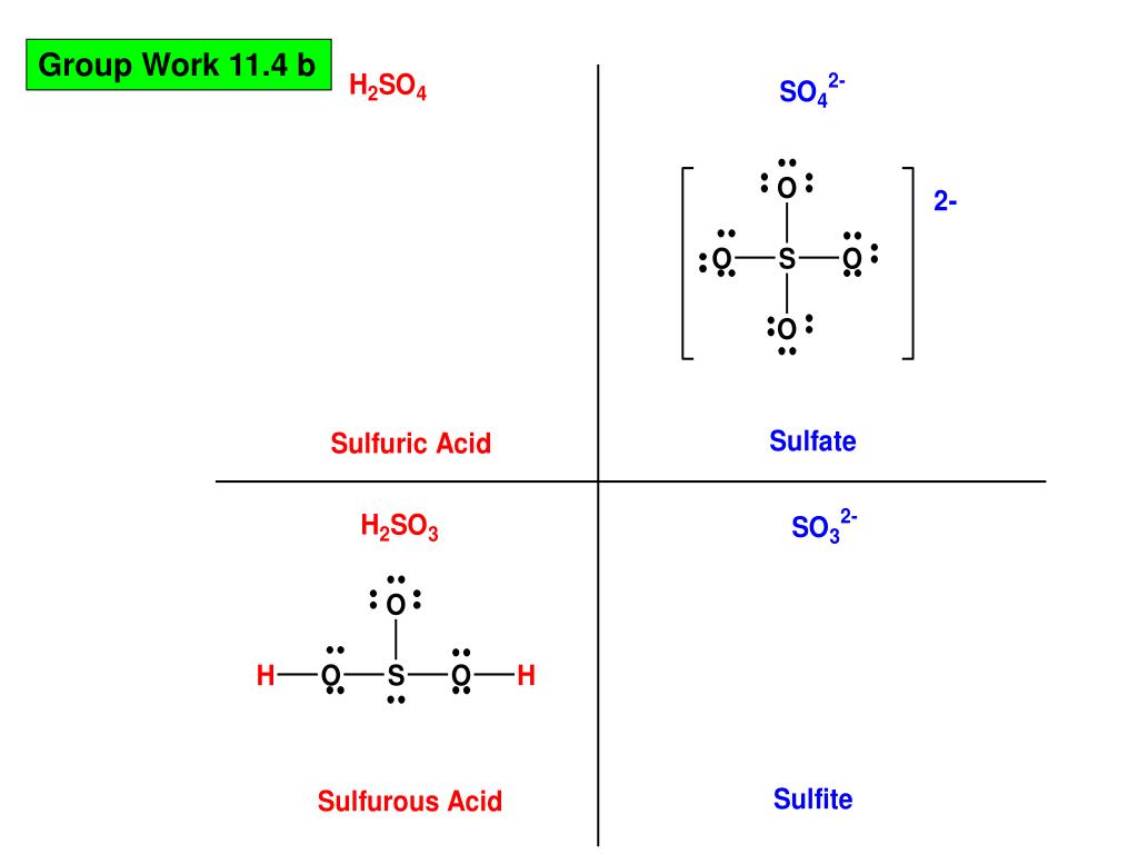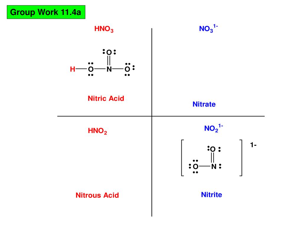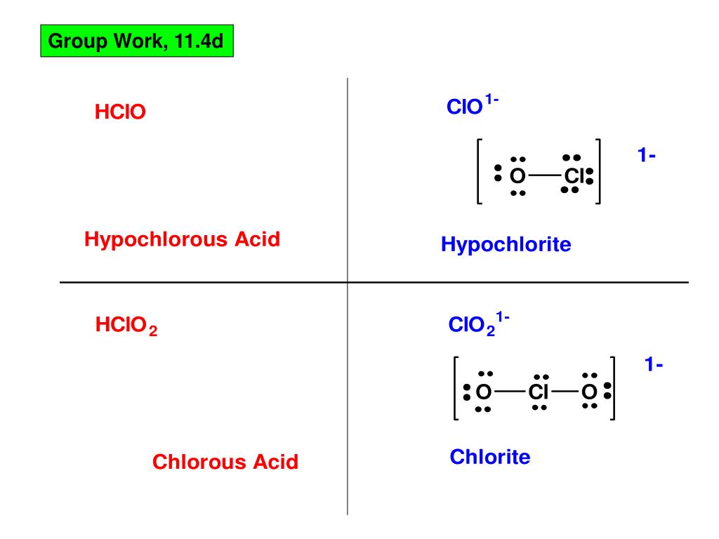 Group Work, 11.4: Acids and Anions Give missing structures, next four slides! Base structure on accompanying acid or anion...