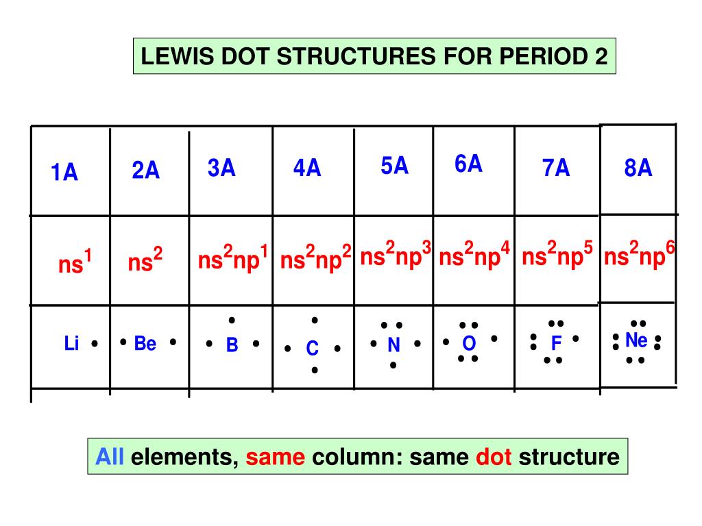 LEWIS DOT STRUCTURES FOR PERIOD 2 All elements, samecolumn: same dot structure