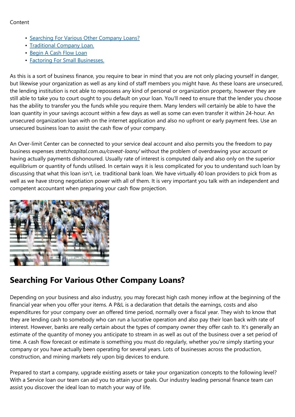 Content • • • • Searching For Various Other Company Loans? Traditional Company Loan. Begin A Cash Flow Loan Factoring For Small Businesses. As this is a sort of business finance, you require to bear in mind that you are not only placing yourself in danger, but likewise your organization as well as any kind of staff members you might have. As these loans are unsecured, the lending institution is not able to repossess any kind of personal or organization property, however they are still able to take you to court ought to you default on your loan. You'll need to ensure that the lender you choose has the ability to transfer you the funds while you require them. Many lenders will certainly be able to have the loan quantity in your savings account within a few days as well as some can even transfer it within 24-hour. An unsecured organization loan with on the internet application and also no upfront or early payment fees. Use an unsecured business loan to assist the cash flow of your company. An Over-limit Center can be connected to your service deal account and also permits you the freedom to pay business expenses stretchcapital.com.au/caveat-loans/ without the problem of overdrawing your account or having actually payments dishonoured. Usually rate of interest is computed daily and also only on the superior equilibrium or quantity of funds utilised. In certain ways it is less complicated for you to understand such loan by discussing that what this loan isn't, i.e. traditional bank loan. We have virtually 40 loan providers to pick from as well as we have strong negotiation power with all of them. It is very important you talk with an independent and competent accountant when preparing your cash flow projection. Searching For Various Other Company Loans? Depending on your business and also industry, you may forecast high cash money inflow at the beginning of the financial year when you offer your items. A P&L is a declaration that details the earnings, costs and also expenditures for your company over an offered time period, normally over a fiscal year. They wish to know that they are lending cash to somebody who can run a lucrative operation and also pay their loan back with rate of interest. However, banks are really certain about the types of company owner they offer cash to. It's generally an estimate of the quantity of money you anticipate to stream in as well as out of the business over a set period of time. A cash flow forecast or estimate is something you must do regularly, whether you're simply starting your company or you have actually been operating for several years. Lots of businesses across the production, construction, and mining markets rely upon big devices to endure. Prepared to start a company, upgrade existing assets or take your organization concepts to the following level? With a Service loan our team can aid you to attain your goals. Our industry leading personal finance team can assist you discover the ideal loan to match your way of life.
