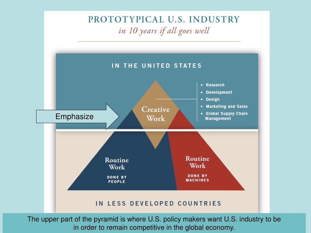 Emphasize The upper part of the pyramid is where U.S. policy makers want U.S. industry to be in order to remain competitive in the global economy.
